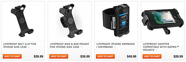 LifeProof Case可以支援單車、機車、還有跑步、沖浪時所使用的套件,這些配件都會在台灣各專門通路銷售。